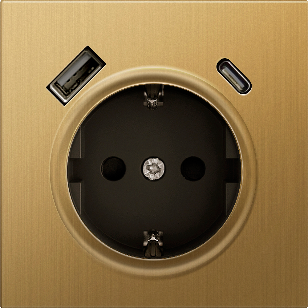 Розетка встраиваемая Donel R98 Metal с заземлением, шторками и USB тип A+C Золото матовое DA15500-DA222BR