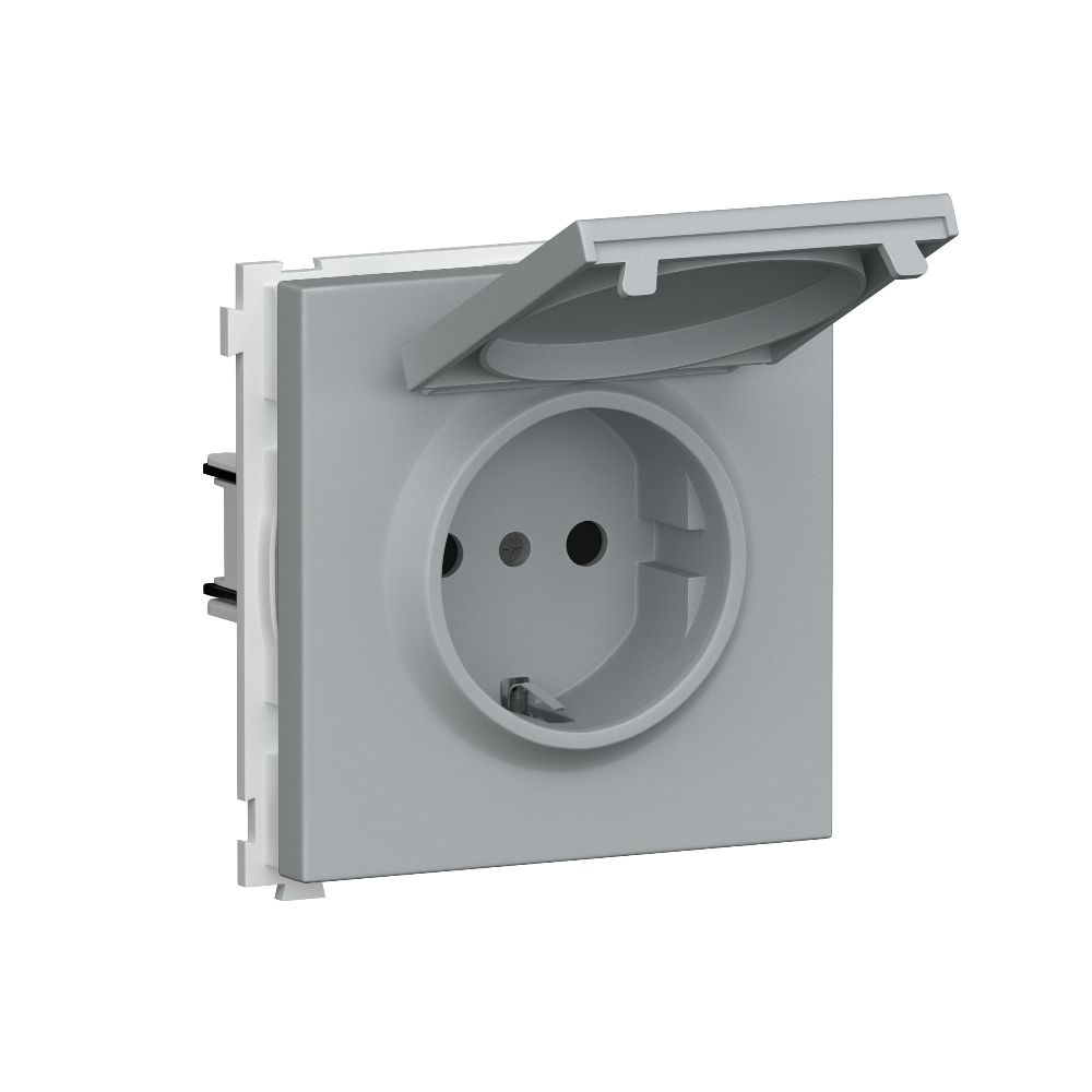 Розетка встраиваемая Donel R98 Schuko с крышкой и заземлением на клеммах Серый матовый DA17700-DA45440