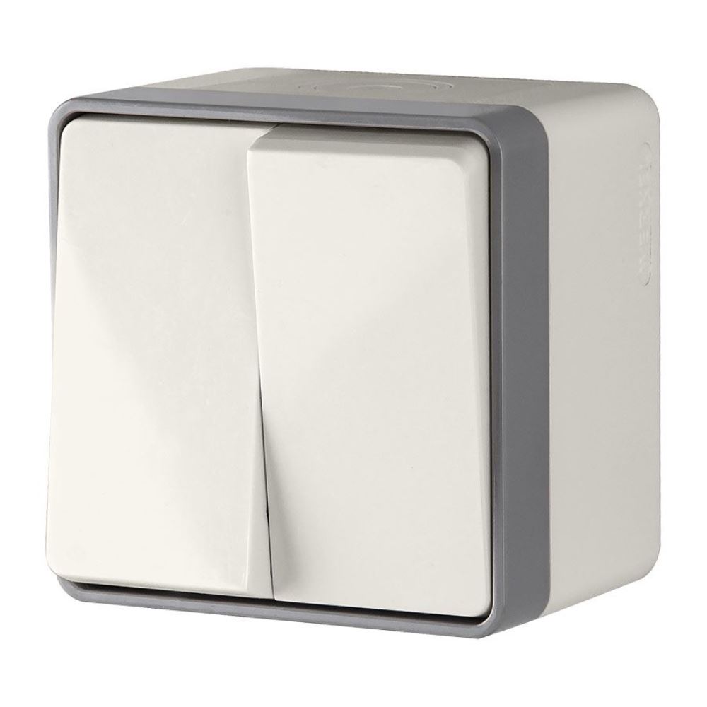 Выключатель двухклавишный накладной влагозащищенный