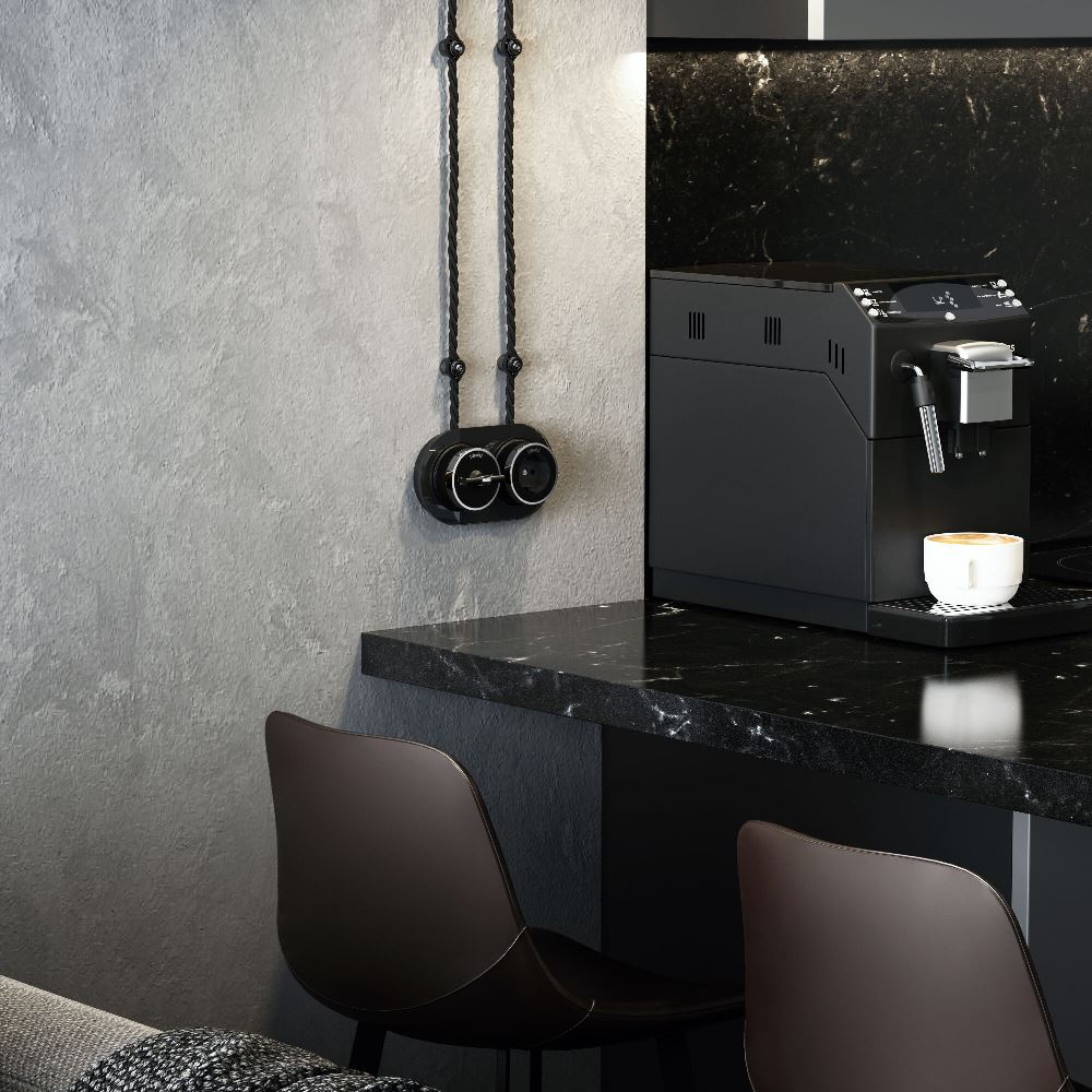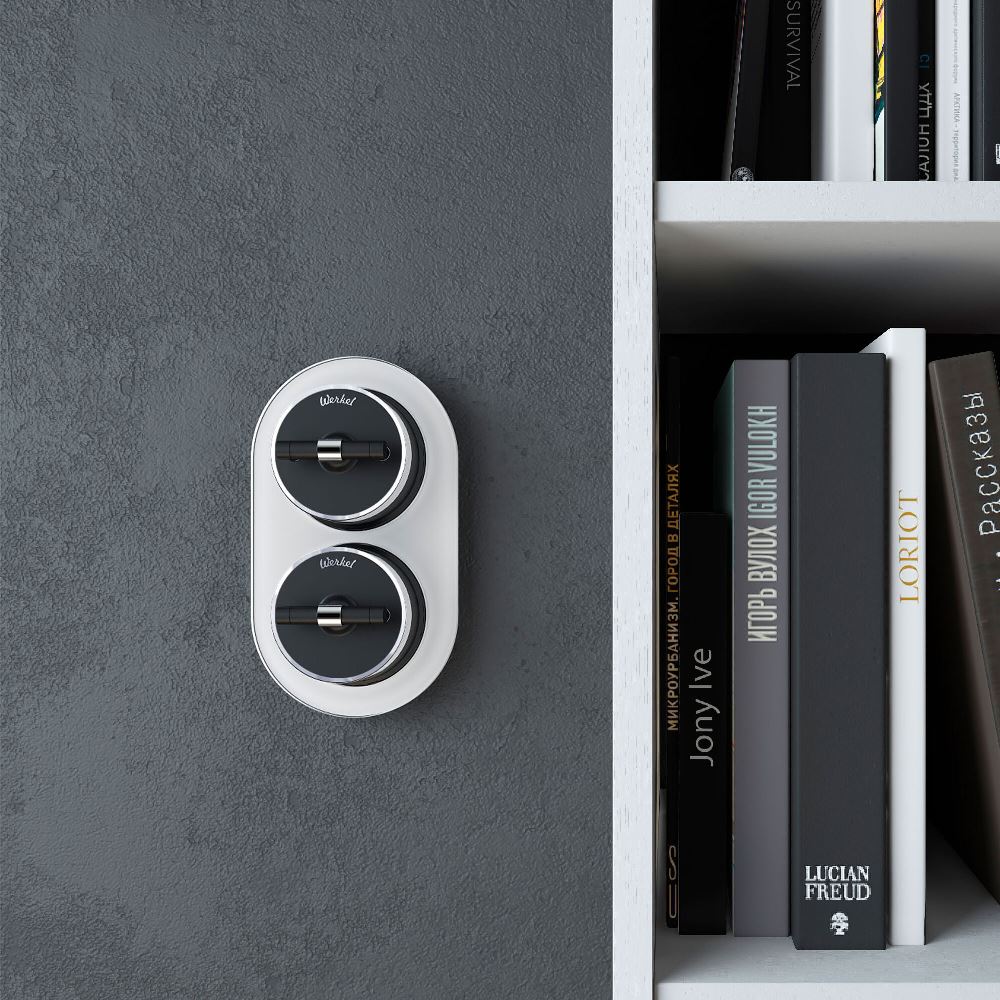 Выключатель двухклавишный накладной Werkel Vintage на 4 положения Черный матовый W5822051
