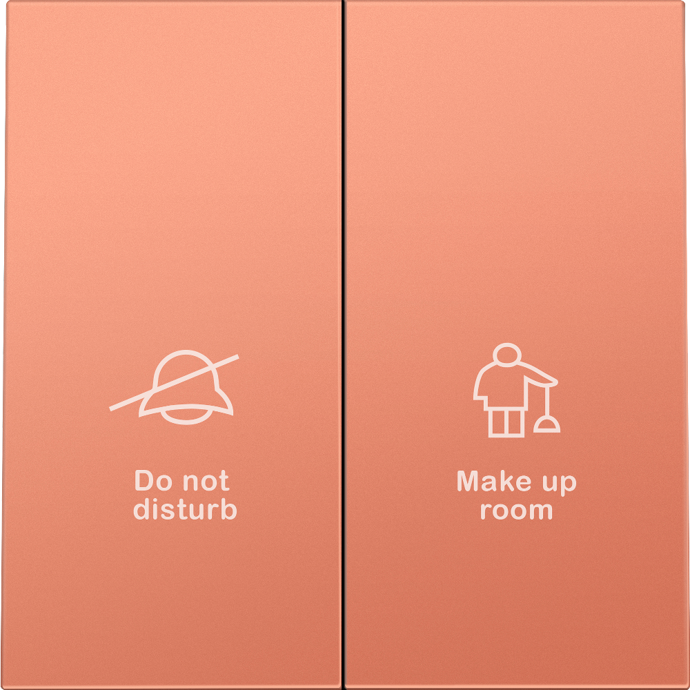 Выключатель двухклавишный встраиваемый Donel R98 с символами DND/MUR Коралл матовый DA25800-DA88845