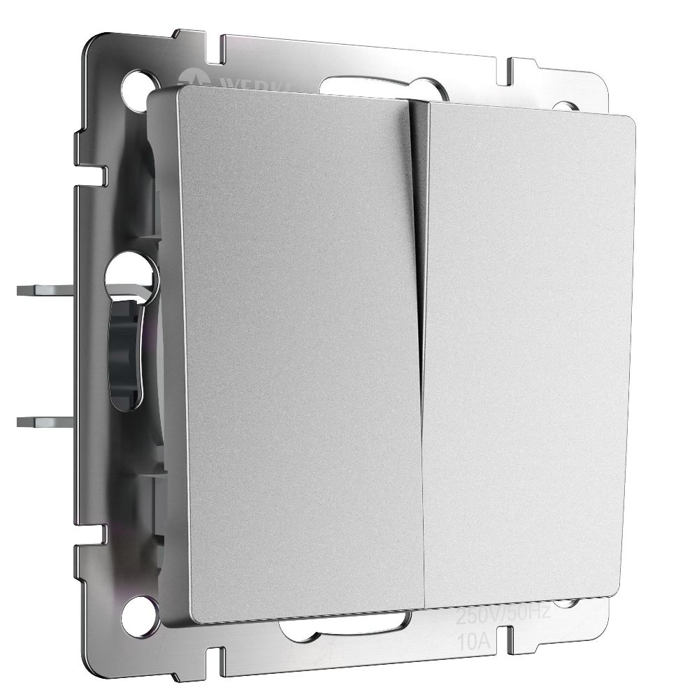 Выключатель двухклавишный встраиваемый проходной Werkel Серебряный матовый W1122065