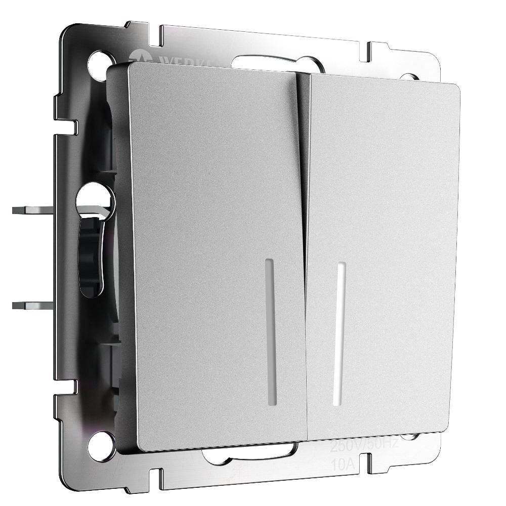 Выключатель двухклавишный встраиваемый Werkel с подсветкой Серебряный матовый W1120165